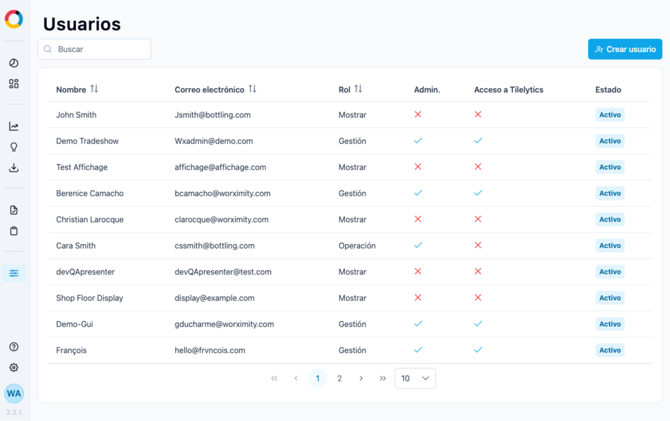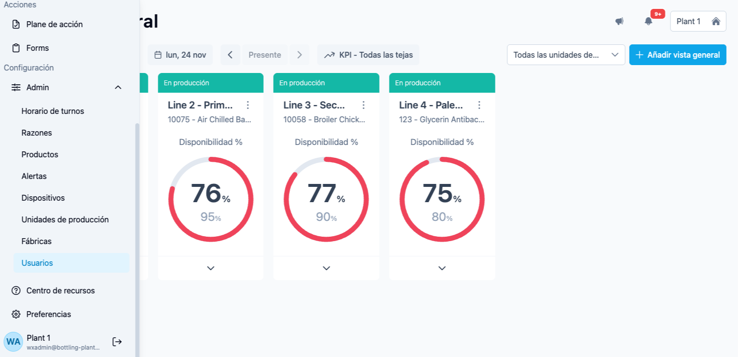 Los usuarios de Gestión o super usuarios pueden usar y administrar todas las funciones de la plataforma, las líneas de producción, razones, usuarios, horarios, etc.